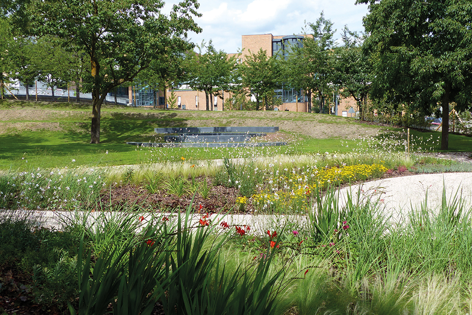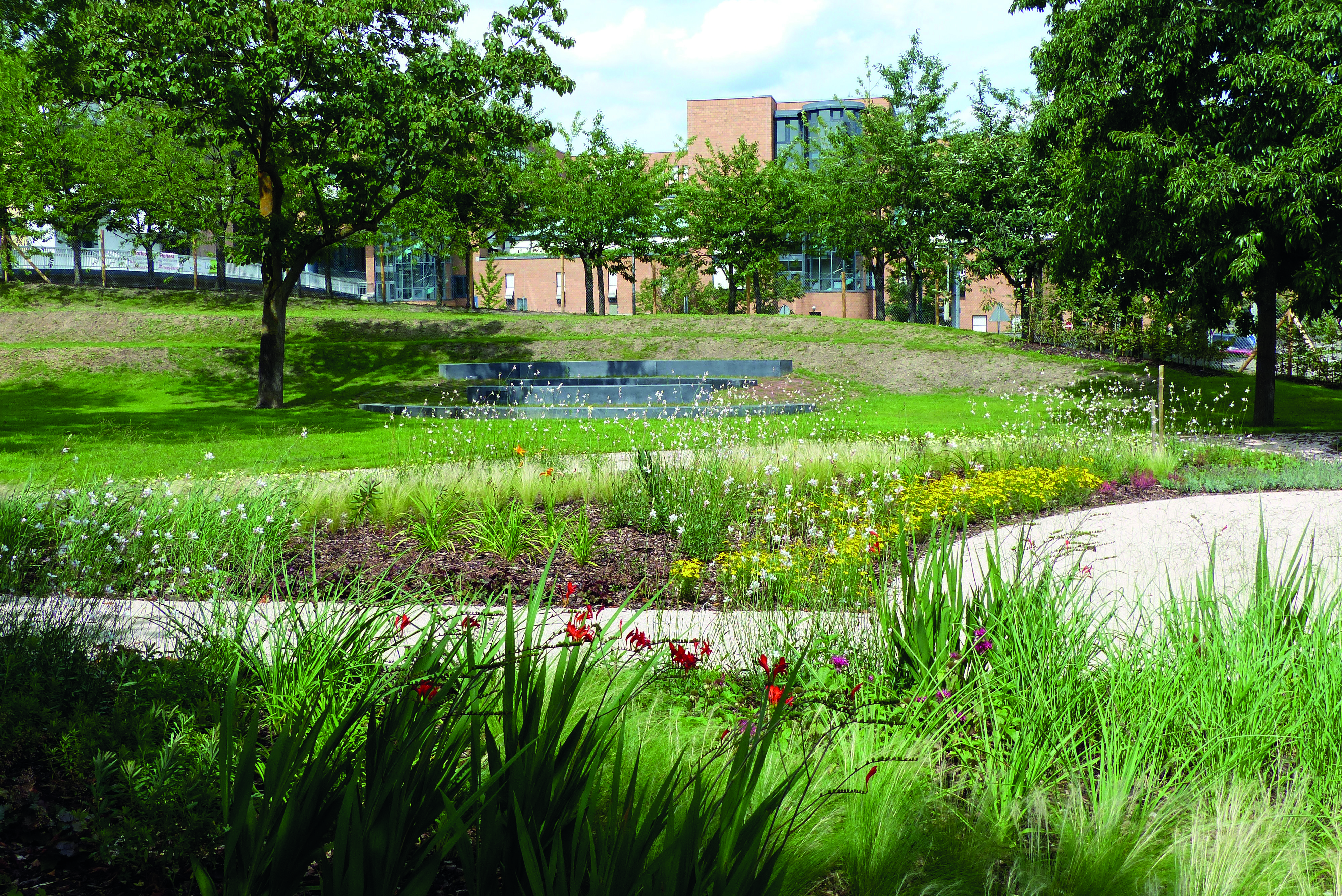 Vom Aushub wurden Hochufer angelegt und ein Aussichtshügel aufgeschüttet