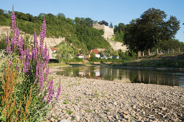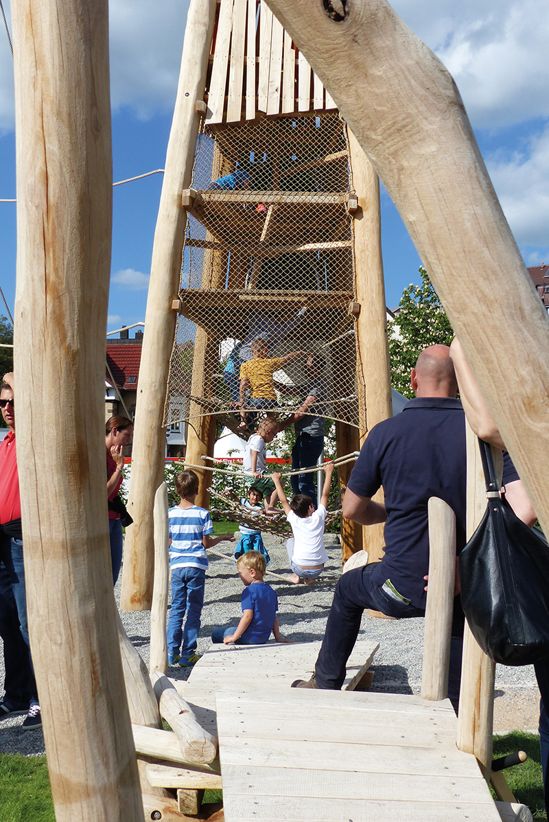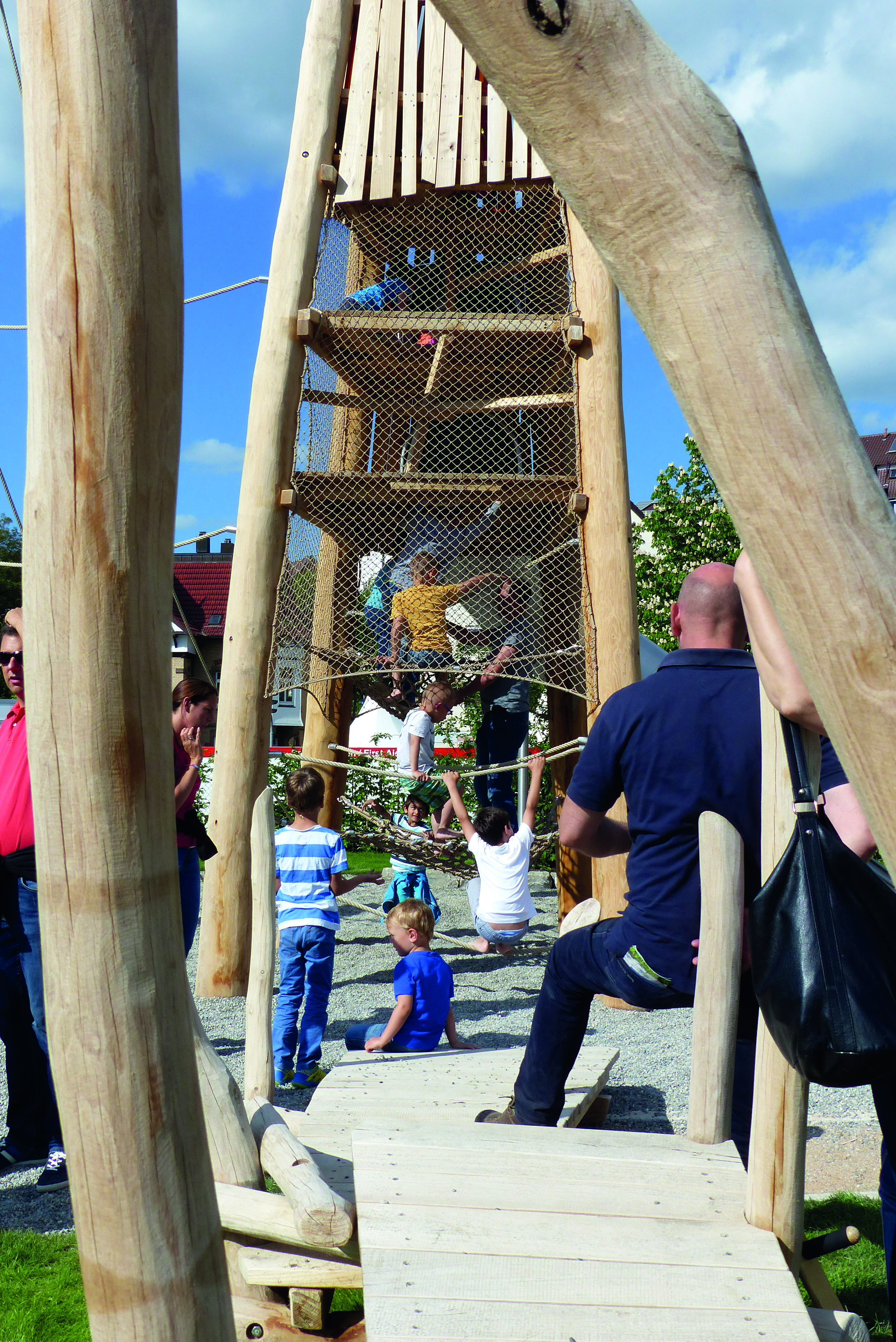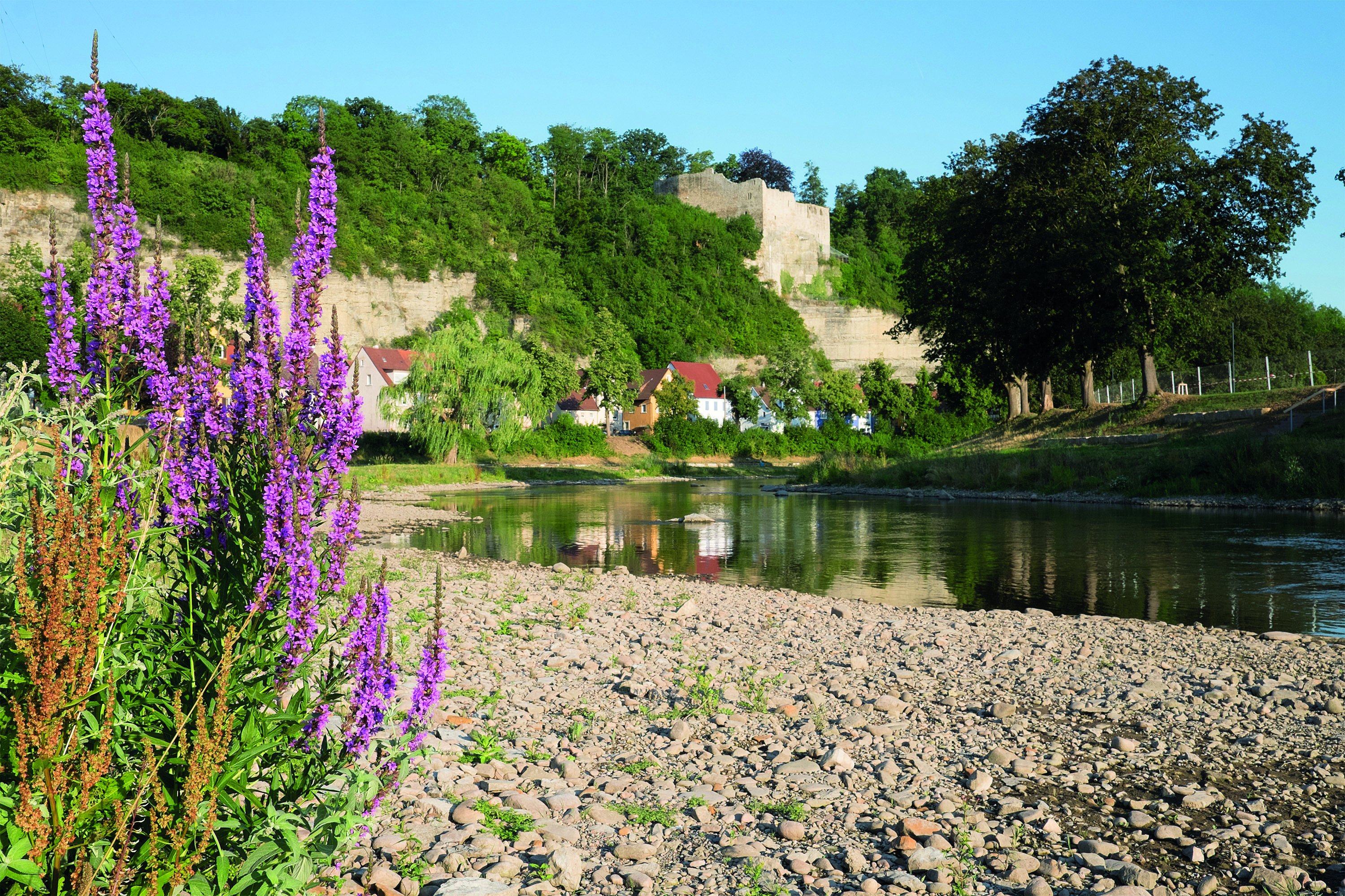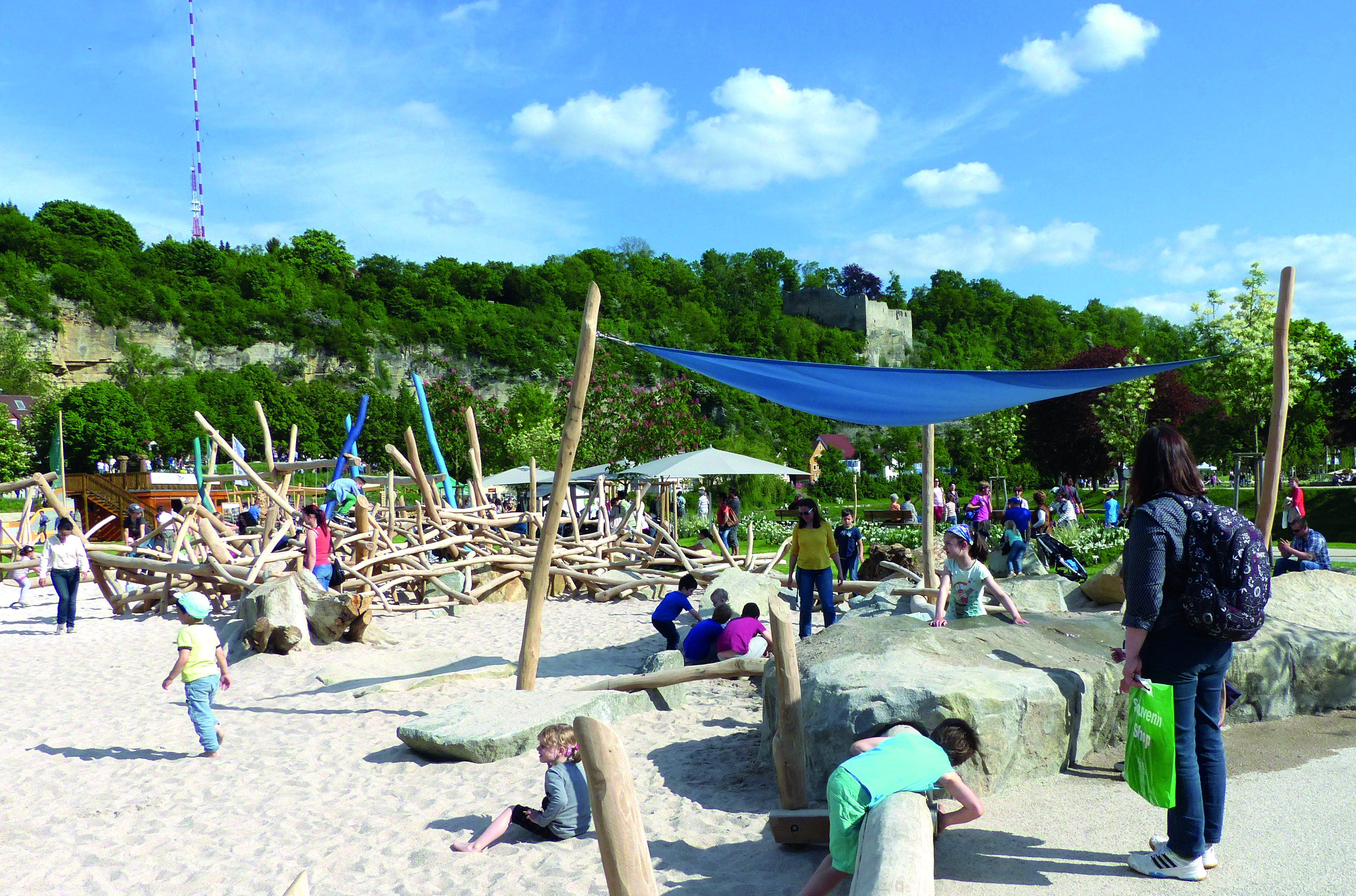 Das Spielareal Sender und Töne vor der Kulisse der Burgruine Löffelstelz