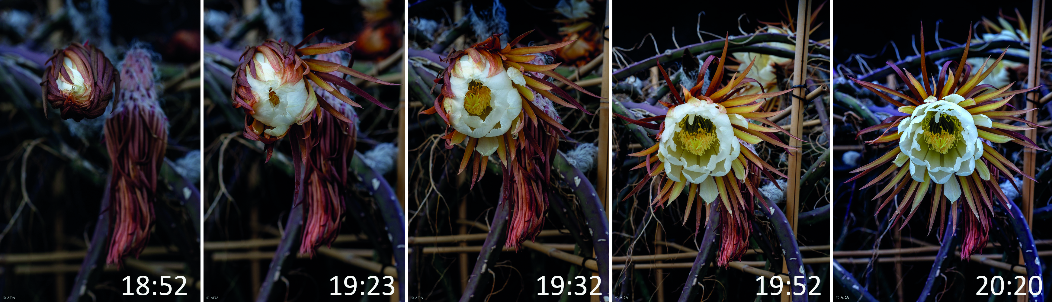 Am 19. Juli konnten Gartenschaubesucher im Kakteengaren verfolgen, wie sich drei Blüten einer Königin der Nach öffnen. Gartenschau-Projektleiter Armin Dauner hat das Schauspiel mit seiner Kamera festgehalten.